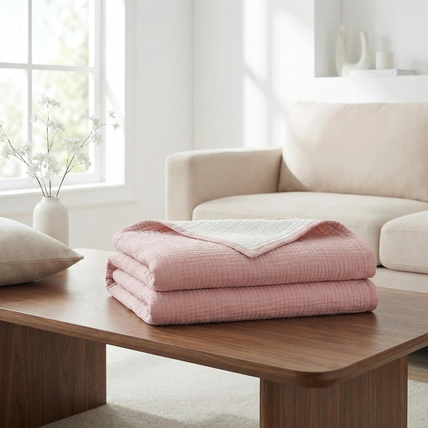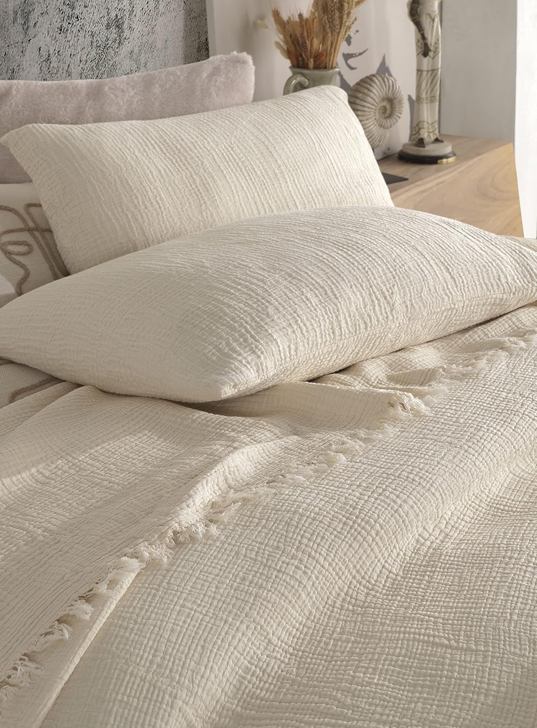 | Product Care Instructions | Do not use washing balls or fabric softeners, as they can damage the muslin weave, Machine wash cold on a gentle cycle with similar colors, No ironing required – muslin is designed to have a relaxed, naturally crinkled look, Tumble dry on low heat to restore softness and enhance the natural crinkle texture, Use mild detergent (avoid bleach and harsh chemicals) |