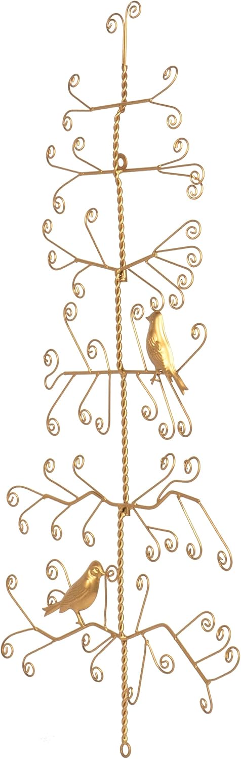Featuring a charming bird design, this wall display is sure to add a touch of whimsy and nature-inspired beauty to your holiday decor. The branches are arranged in a tiered formation, which not only adds visual interest but also makes it easy to see each card in the display. This allows you to showcase all of your cards and photos in a way that is both organized and aesthetically pleasing. The golden finish adds a classic touch and makes this piece perfect for any style, from modern and contemporary to traditional and rustic. With its easy-to-use keyhole design, this wall display can be hung in just a few minutes, allowing you to enjoy your festive decor without any hassle (mounting hardware is not included).